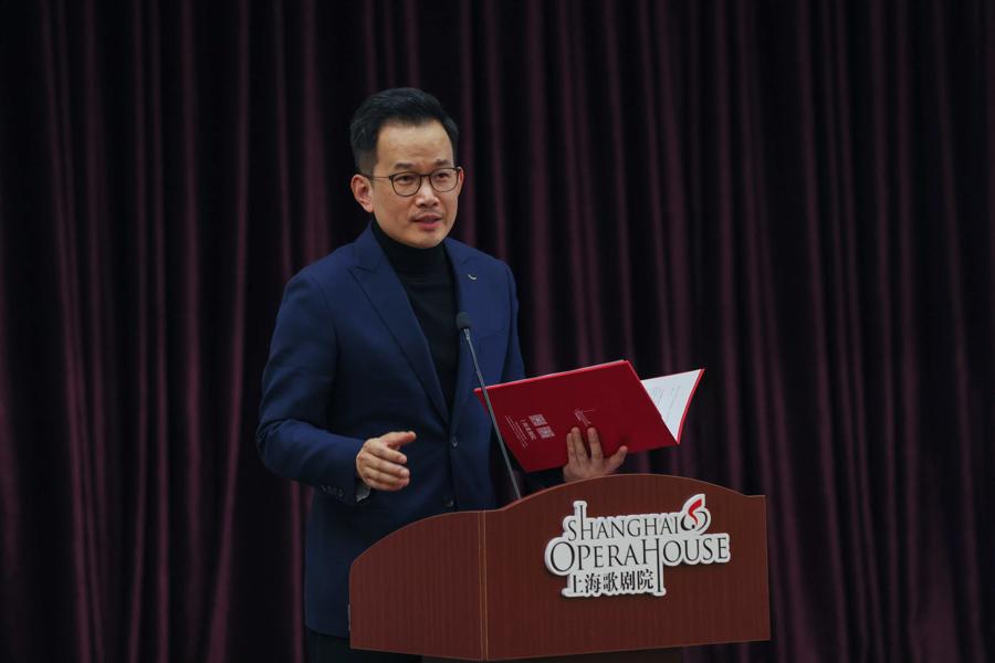 發佈會現場,上海歌劇院新任院長、著名男高音歌唱家石倚潔介紹藝術嘉年華籌備情況。