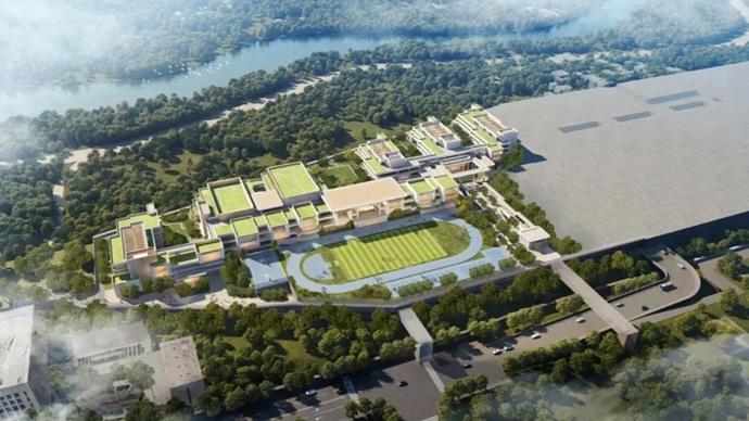 項目位於餘杭區杭州西動車所蓋板之上,臨近地鐵19號線苕溪站,是一座名副其實的“空中校園”。根據規劃,學校總建築面積約88690平方米,將建設包括教學樓、綜合樓、體育館、食堂、報告廳等在內的完備設施,致力於打造一個功能合理、舒適宜人的現代化校園環境,充分滿足未來師生的教學與成長需求。