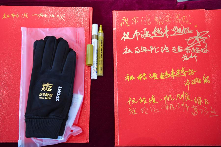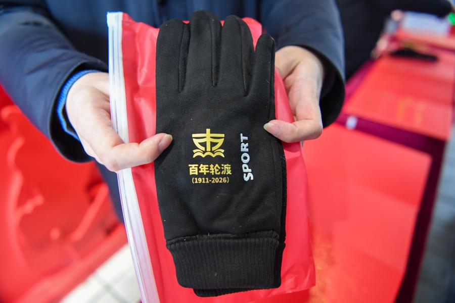 印有“百年輪渡”字樣的保暖手套。