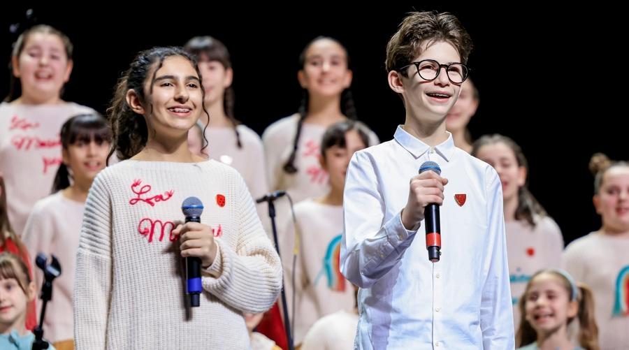 安東尼亞諾小合唱團與繡球花小合唱團的孩子們同臺獻唱《點亮星星》、《你像鑽石一樣珍貴》等歌曲。