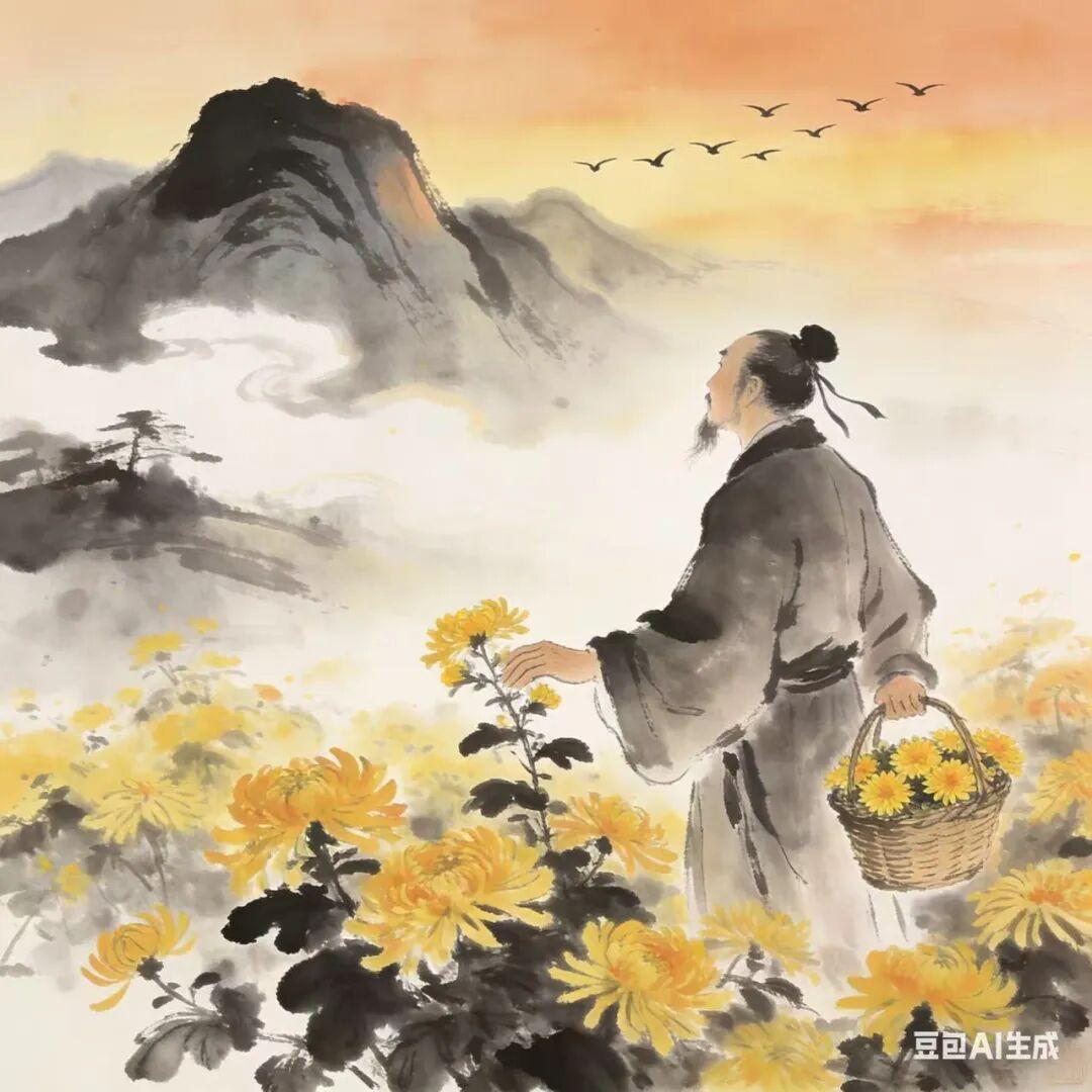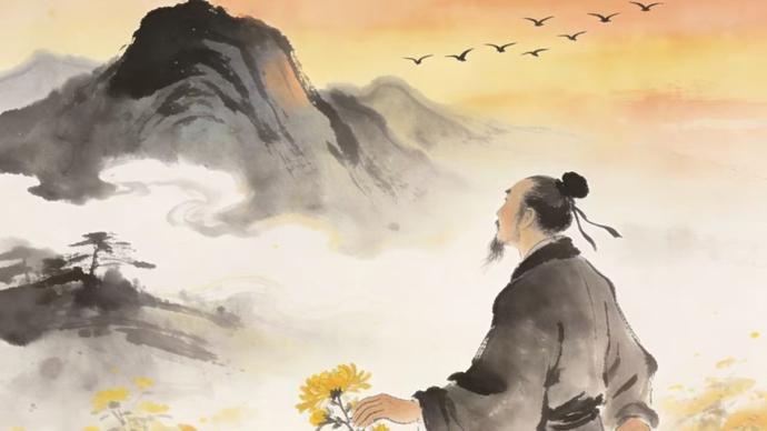 採菊東籬下,悠然見南山。山氣日夕佳,飛鳥相與還。