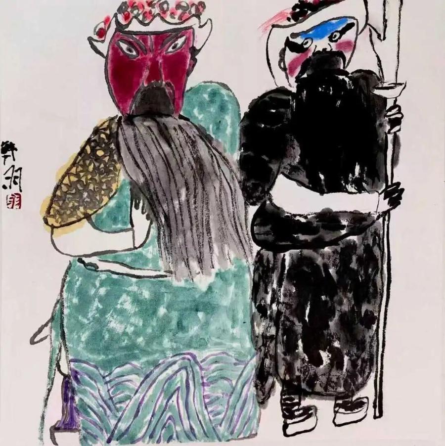 近年來,戲曲人物畫依然保持着活躍的態勢。在展覽“第三幕:戲裏·戲外”中,餘啓平、顧村言、白瓔、徐旭峯等藝術家以獨有的筆墨對戲曲進行解讀、重構和變體。