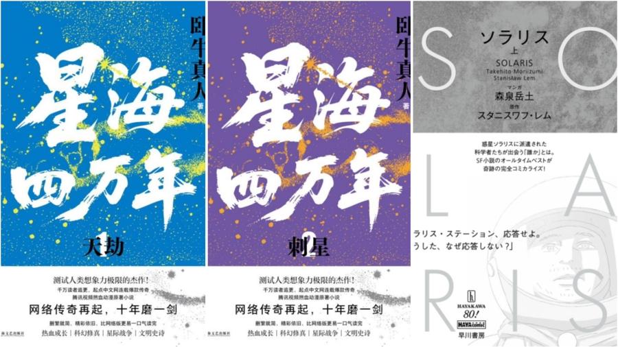 上海文藝出版社出版的《星海四萬年1:天劫》《星海四萬年2:刺星》,最右爲《索拉里斯星(上、下)》原版封面。