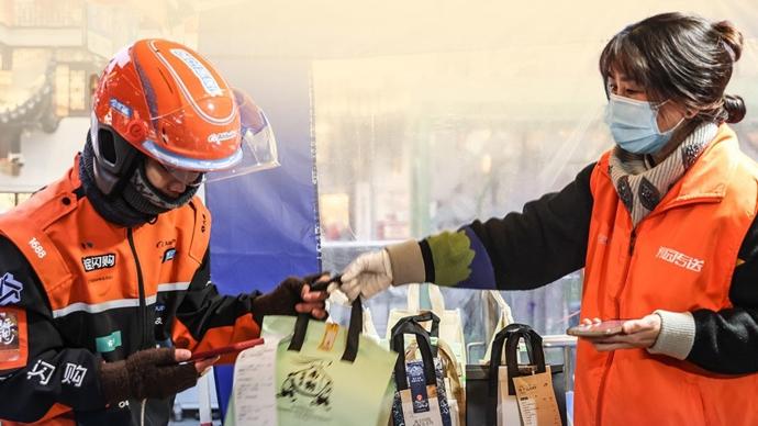 黃浦區豫園街道黨工委推動全國首個商圈景區類“接力送”模式在此落地——騎手將餐品送至中轉站即可離開,由站內專職步行配送員接力完成“最後一公里”,如此一來,圈內配送時效壓縮至10分鐘左右,90%訂單按時送達。