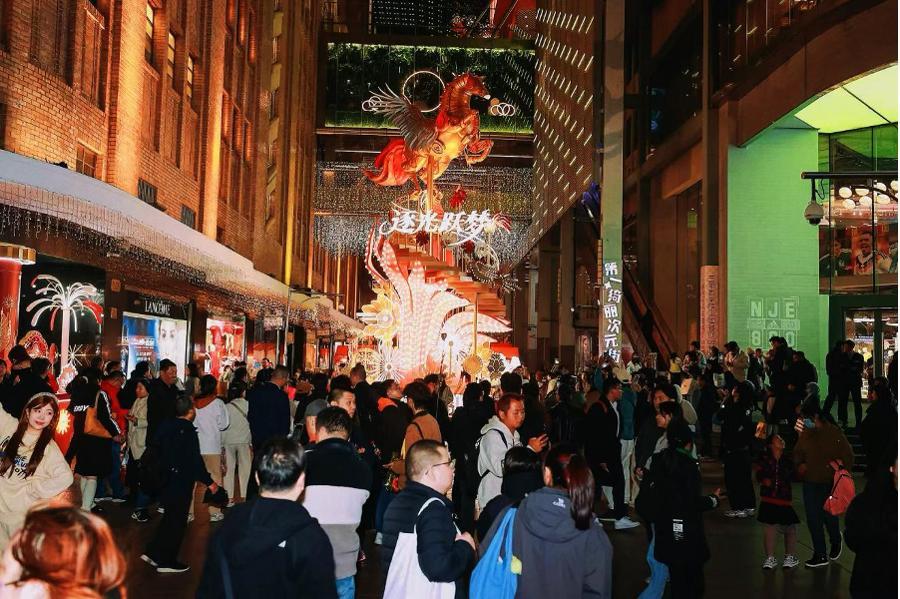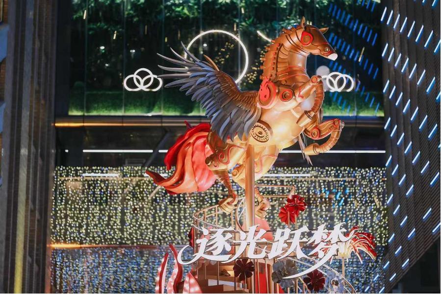 在跨年整合營銷活動中,百聯股份以“逐光躍夢”爲核心主題,在旗下多個商業地標設置了既統一又各具特色的馬年生肖藝術裝置,成爲“文旅商體展”融合的視覺基石。