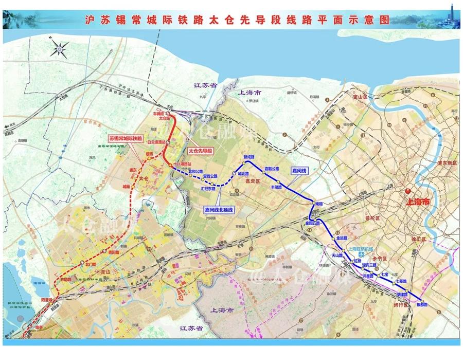 滬蘇錫常城際鐵路太倉先導段,北起太倉站,向西沿太倉江南路設白雲渡路站,轉向南設十八港路站,終至蘇滬交界。採用與上海嘉閔線一致的市域鐵路標準,將與嘉閔線北延伸段貫通運營。項目新建正線長約10.4公里,設計速度160公里/小時,建設工期4年。項目建成後,可實現與上海軌道交通2號線、9號線、12號線等10餘條地鐵線,和機場聯絡線等市域鐵路的換乘。乘客無需提前購買車票,通過刷卡即可乘坐,達到地鐵化運營、隨去隨走的效果,大幅提高出行的靈活性,進一步縮短太倉與上海市中心的通勤時間,助力太倉完善區域綜合交通運輸體系,加快融入長三角一體化發展。預計,2027年實現區間貫通。