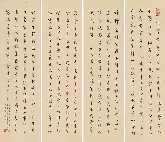 以上所說的,是關於寫字的基本法則,可當作一種規矩及準繩講,不過是一種呆板的方法而已。寫字最好的方法是怎樣?用哪一種的方法纔可以達到頂好頂好的呢?我想諸位一定很熱心的要問。我想了又想,覺得想要寫好字,還是要多多地練習,多看碑,多看帖纔對,那就自然可以寫得好了。諸位或者要說,這是普通的方法,假如要達到最高的境界,須如何呢?我沒有辦法再回答。曾記得《法華經》有云:“是法非思量分別之所能解”,我便借用這句子,只改了一個字,那就是“是字非思量分別之所能解”了。因爲世間上無論哪一種藝術,都是非思量分別之所能解的。即以寫字來說,也是要非思量分別,纔可以寫得好的;同時要離開思量分別纔可以鑑賞藝術,才能達到藝術的最上乘的境界。記得古來有一位禪宗的大師,有一次人家請他上堂說法,當時臺下的聽衆很多;他於登臺後,默然坐了一會兒以後,即說:“說法已畢”,便下堂了。所以今天就寫字而論,講到這裏,我也只好說:“談寫字已畢了。”
