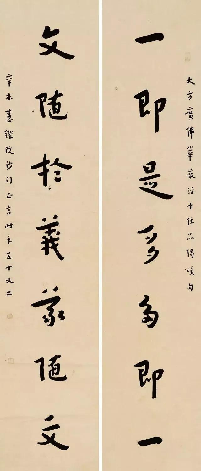 一般人認爲每個字都很要緊,然而依照上面的記分,只有三十五分。大家也許要懷疑爲什麼章法反而分數佔多數呢?就章法本身而論,它之所以佔着重要地位的原因,理由很簡單。在藝術上有所謂三原則,即一、統一,二、變化,三、整齊;這在西洋繪畫方面是認爲很重要的。我便借來用在此地,以批評一幅字的好壞。我們隨便寫一張字,無論中堂或對聯,普通將字排起來,或橫,或直,首先要能夠統一;字與字間,彼此必互相聯絡,互相關係纔好。