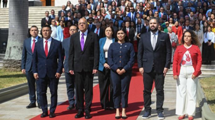 羅德里格斯5日下午在該國全國代表大會宣誓就任委臨時總統。“我懷着悲痛的心情而來,但我也必須說,我懷着榮耀的心情,以全體委內瑞拉人民的名義宣誓,以我們的解放者西蒙·玻利瓦爾的名義宣誓……我以我的榮譽起誓,我將竭盡全力,直至看到委內瑞拉重回榮耀的殿堂。”羅德里格斯宣誓道。