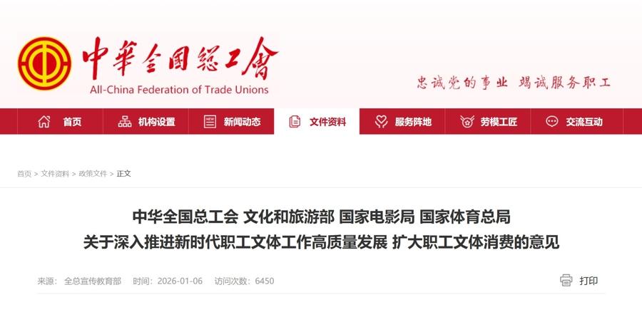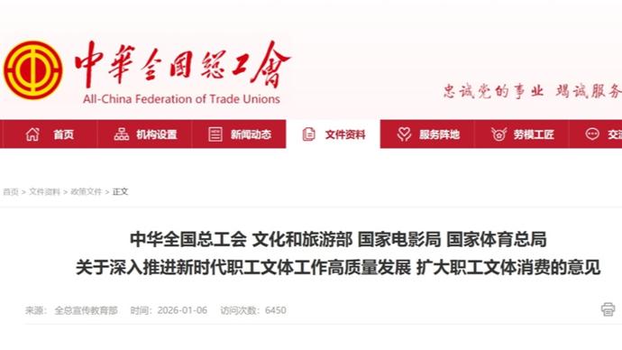近日,全國總工會、文化和旅遊部、國家電影局、國家體育總局聯合印發《關於深入推進新時代職工文體工作高質量發展 擴大職工文體消費的意見》,旨在系統推進職工文體工作,釋放消費潛力,滿足廣大職工日益增長的精神文化需求。