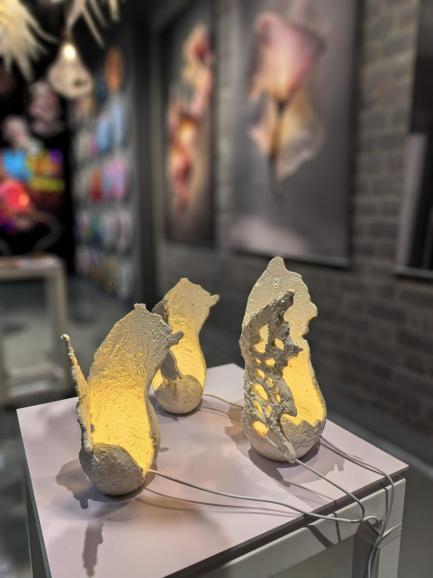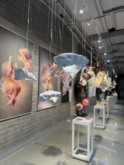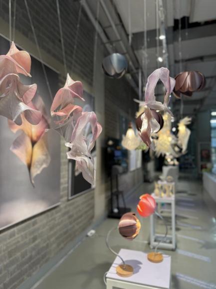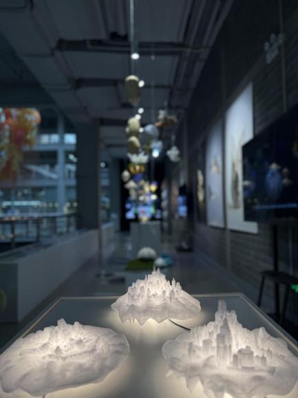 在實訓中心一樓展廳,來自不同專業背景的學生,展出他們在本學期圍繞“藝術×科技”跨界探索的系列成果。這些作品在概念深度、視覺呈現與技術完成度上均展現出豐富的可能性,共同回應“The Lost Beauty of Nature”這一核心命題。