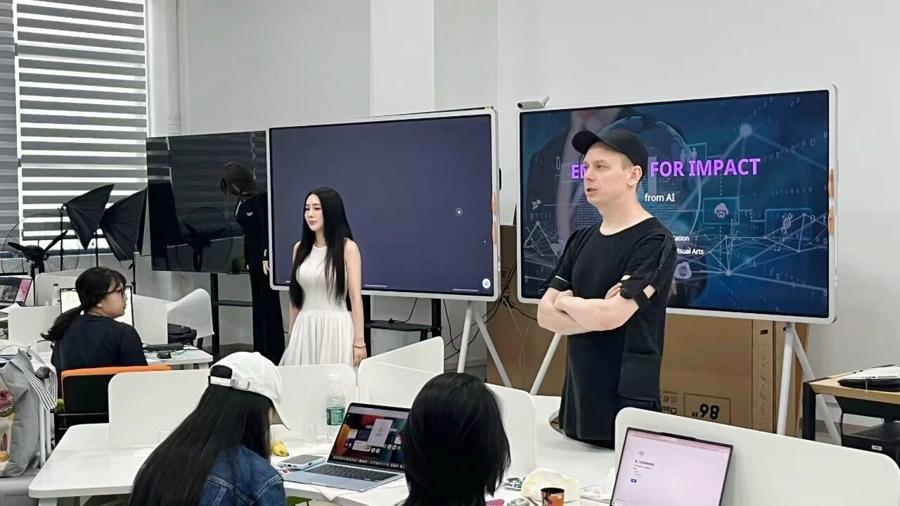 在教學設計上,本學期專業課創新採用整合式課程集羣模式,由未來設計學院青年教師蔣藝副教授牽頭規劃,並聯合英國藝術家Leon Krykhtin、留美青年教師賈璇濱組成國際教學團隊協同授課,保障教學的專業視野與國際化水準。