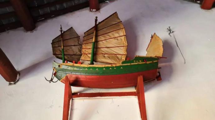 在東海島嶼的廟宇中,常會見到一種精緻的船模,高懸在正殿之內的牆壁上,須仰視才見。這種船模是海島民間信仰中的一種模擬器物,有船的漁戶爲了求取平安,便請人將自家的船按比例縮小,做成一尺多長的船模,放在廟中供奉,據說可保佑海上行船的平安。在當地的方言裏,人們將這類船稱之爲“娘船”。