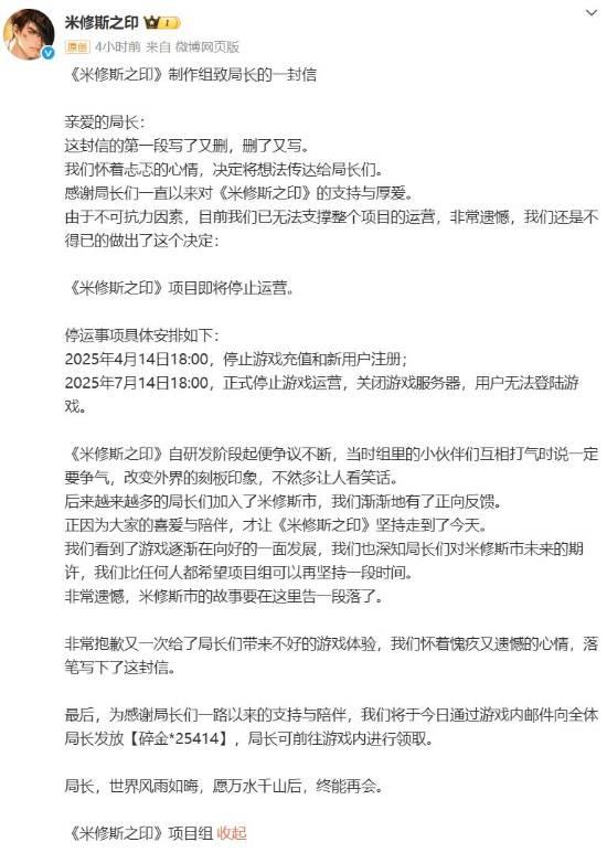 僅2025年,已有《白夜極光》《歸龍潮》《霧境序列》《行界》等超20款二次元遊戲停更或關服。新遊戲的生存窗口正被急劇壓縮:《米修斯之印》運營271天,《黃金四目》僅維持158天。市場彷彿開啓了一場無聲的“縮圈”——安全區正持續收縮,資源加速向頭部集中,後來者必須在更短的時間內證明自己的生存價值。