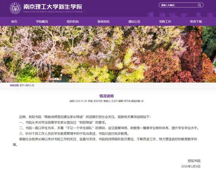 1月9日下午,南京理工大學致知學院針對此事發布情況說明: