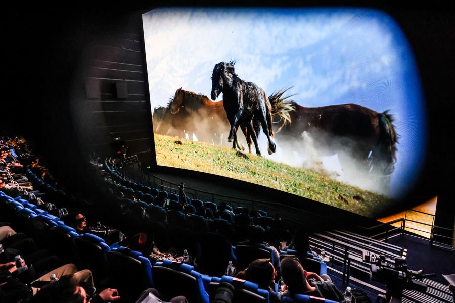 爲了承載高質量的科學內容,上海科技館選擇了一條極具挑戰的硬件升級之路。首映式所在的CINITY science巨幕影院,是全球首例應用LED電影屏放映系統的科技館影院。這一系統集結了4K、3D、高亮度、高幀率等七大頂尖放映技術,配合中影集團新一代CLED透聲屏方案,解決了傳統投影在科學細節呈現上的痛點。當銀幕亮起,八匹馬的肌肉紋理與呼吸律動纖毫畢現,宛如親臨自然現場,爲觀衆帶來更加沉浸的視聽盛宴。