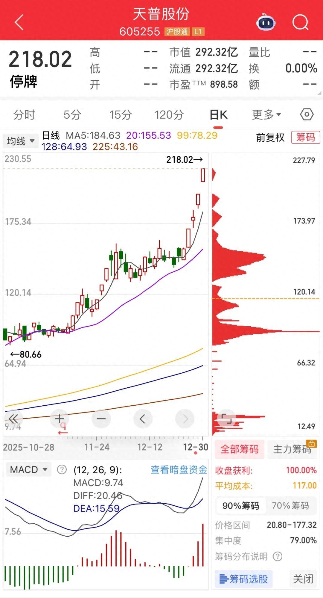 天普股份,是一家主營汽車橡膠管路的傳統制造企業。自2025年8月22日至12月30日,股價一路上揚,截至12月31日停牌前,股價已經漲至218.02元/股。