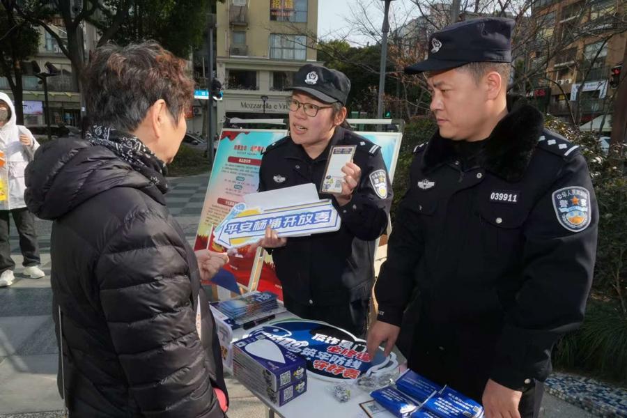“民警是不會以任何形式要求你轉賬的。”“異地也可以輕鬆補辦身份證,省去來回奔波煩惱。”市民紛紛手持特製的“平安爭章卡”,穿梭於各攤位間打卡互動,學習識別詐騙手法、瞭解便民政策、觀摩警用無人機等,每完成一項體驗即可收穫一枚特色印章。集滿印章後,即可獲得參與抓娃娃機遊戲的機會,將可愛的“平安小熊”玩偶等精美禮品帶回家。