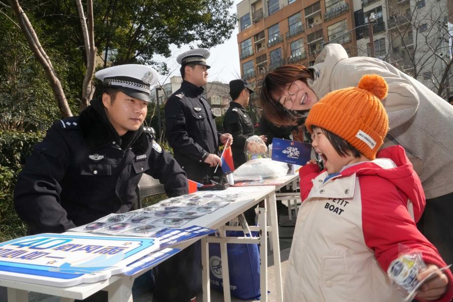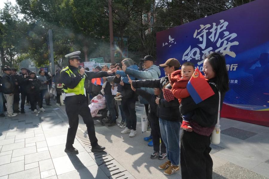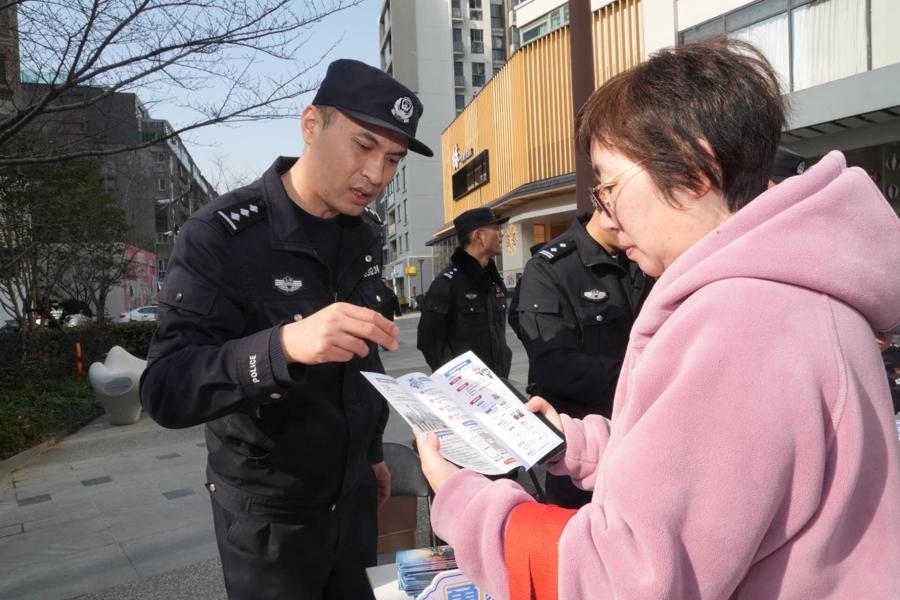 “騎行路上跑,頭盔是個寶。”另一邊,“小楊警宣講團”成員以輕鬆幽默的脫口秀形式,將交通安全、煙花爆竹安全管控、文明養犬等貼近生活的知識娓娓道來,引得現場笑聲掌聲不斷。“你知道開車時看了一眼手機,相當於盲開多少米嗎?”“50米!”宣講中穿插的互動提問,引發臺下積極搶答。
