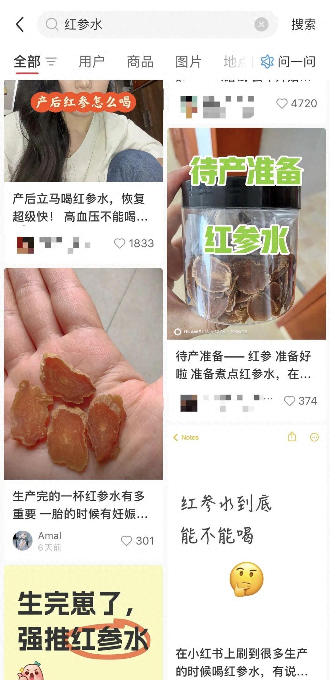 最近,紅參水在各大社交平臺的孕產圈裏火了起來,不少博主將其列入“待產包必備清單”,並分享親身經歷:產前喝能“攢足力氣,超快順產”,產後喝則可“大補元氣,迅速下牀、恢復體重”。這些極具誘惑力的描述,讓許多孕產婦心動不已,紛紛效仿。