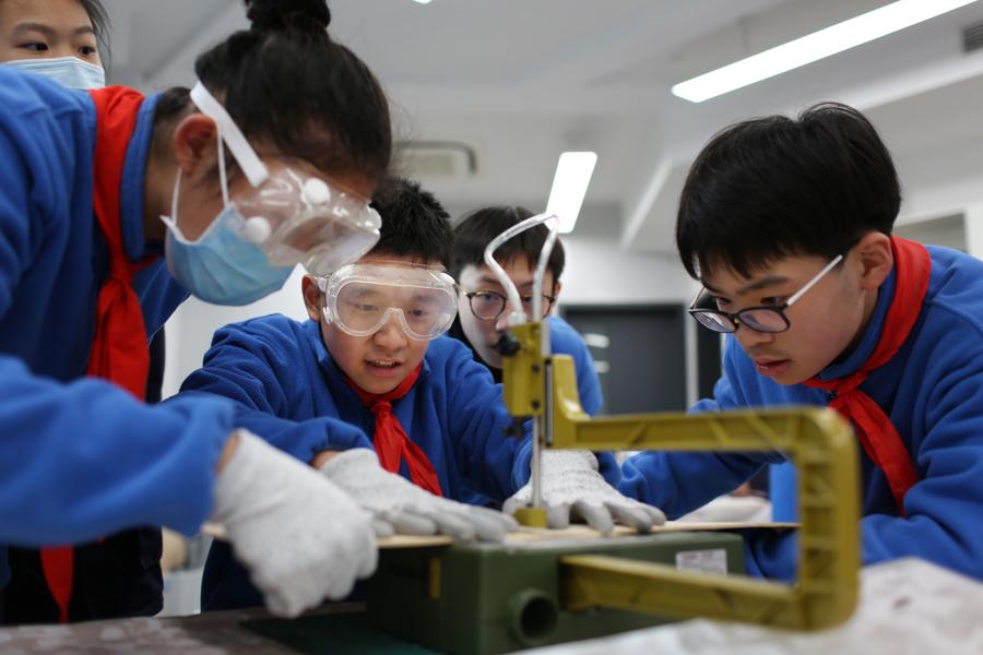 在上海市靜安區教育學院附屬學校,不同年級學生每週都有1至3次開展探究學習的機會。學生們走進創新實驗室,用3個課時投身跨學科、項目化的學習活動——有的班級自主設計蔬菜滴灌系統,將教學樓屋頂的“空中菜園”打理得井井有條;有的班級聚焦“火星車”研發,模擬其在複雜地形中的移動模式;還有的學生髮揮手工特長,親手設計縫製出獨具創意的“親情坐墊”……