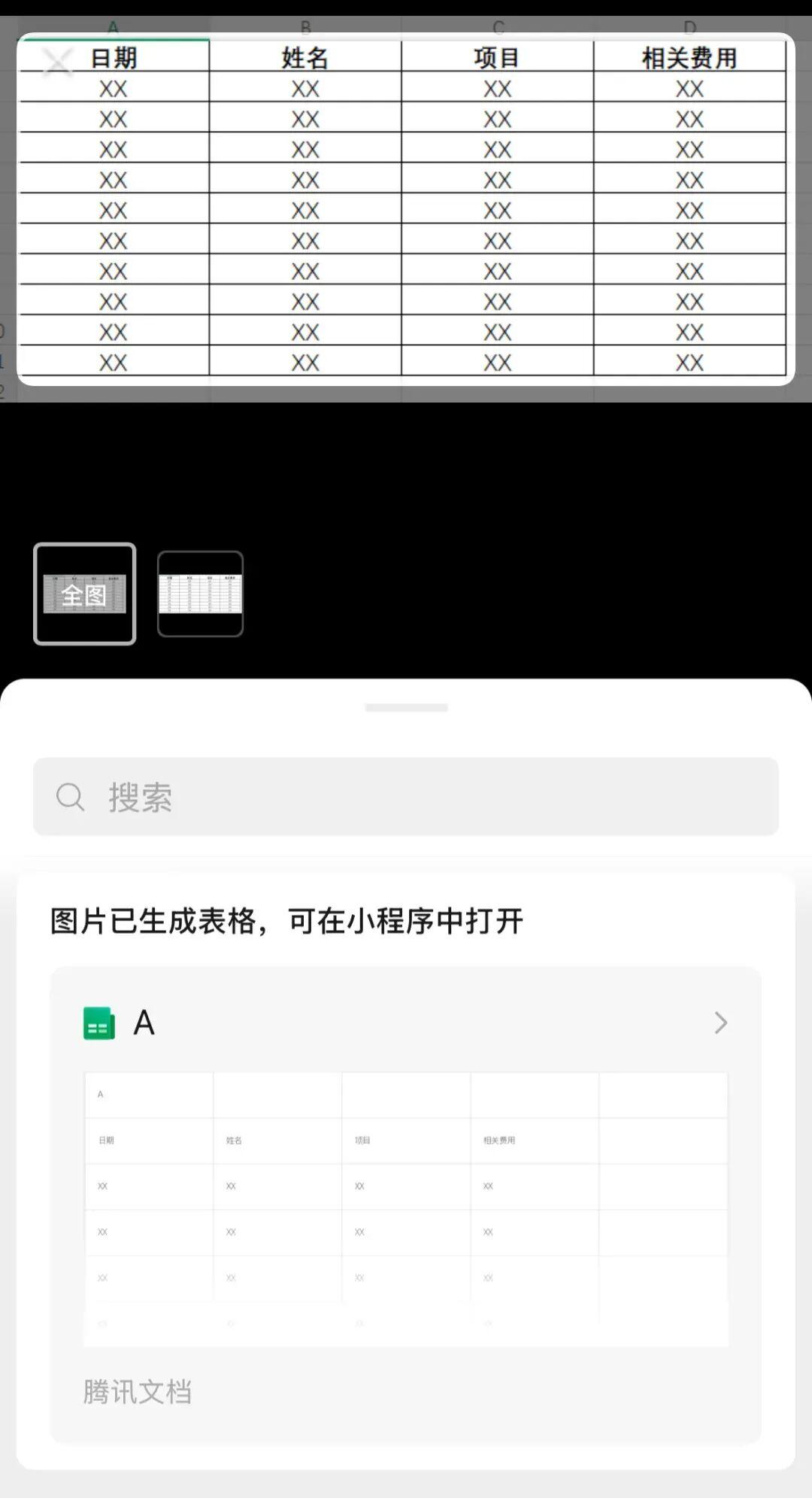 ②點擊“搜一搜”,就會看到圖片已被識別爲在線文檔,可以進行修改等操作。