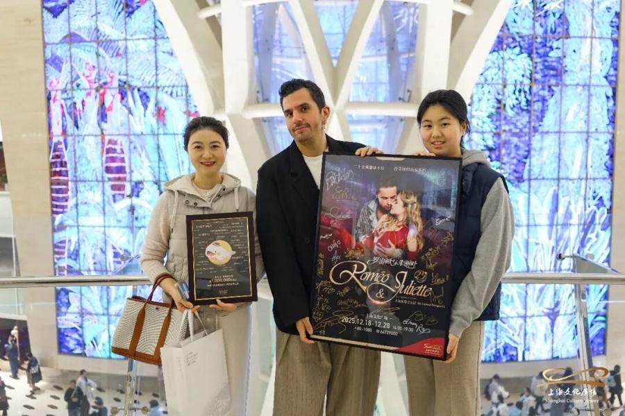 2025年12月23日,觀衆許女士收到了一份特殊禮物——當她走進正在上演音樂劇《羅密歐與朱麗葉》的上海文化廣場時,被告知成爲劇院“年末大戲”品牌第100萬位觀衆。“2011年起,我就在這裏看戲了!上海文化廣場搭建了年末大戲的平臺,讓我們看見並愛上了音樂劇。”許女士透露,她一直帶女兒看演出,現在孩子已經組建了學校音樂劇社團。