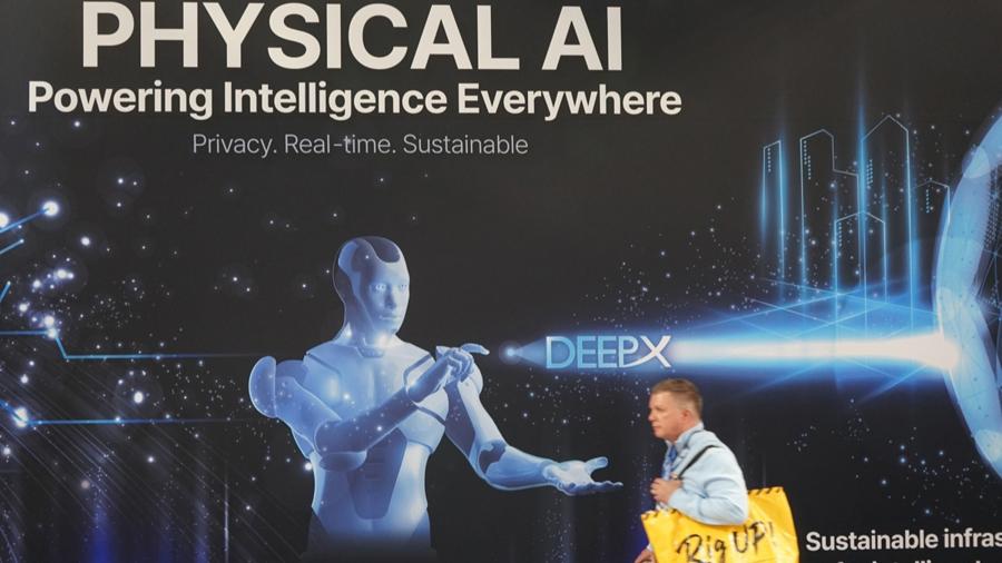 2026年美國拉斯維加斯消費電子展上印有“物理AI”字樣的展臺。(新華社/曾慧攝)