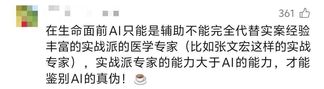 當然,張文宏也不是完全否定AI在醫療領域的作用。他覺得AI可以在一些輔助性的工作上發揮作用,比如幫助醫生快速查找相關的醫學文獻、提供一些參考的治療方案等。