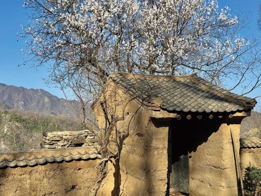 大門樓旁邊又栽了棵石榴樹,本來拿不定主意,只是覺得大門牆角處,應該有根線條,豐富門樓的節奏,後來遇到棵石榴樹,就給移了過來。栽好才發現, 比想象中的還好看,石榴樹的顏色和粗糙的枝幹,與土牆的粗糲感絕配。而且石榴樹還會結果子,作爲秋天的意象,掛在樹上,像這個季節掛滿枝頭的柿子一樣,都是精神食糧,看看就滿足了。