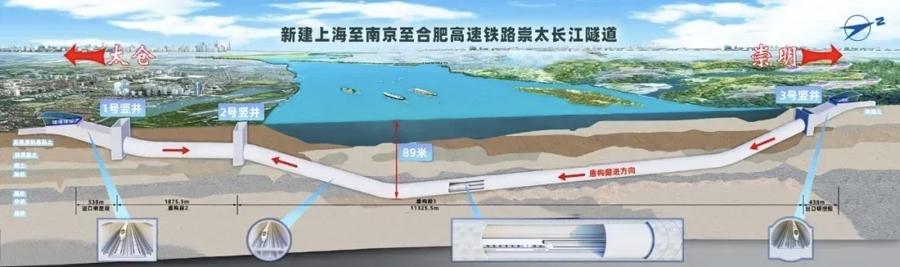 崇太長江隧道是國家“兩重項目”滬渝蓉高鐵(北沿江高鐵)滬寧段的關鍵控制性咽喉工程,連接着上海市崇明區與江蘇省太倉市,是南通“八龍過江”中第六條通道——“南隧北橋”的組成部分,是目前我國建設標準最高、掘進距離最長、規模最大的高鐵越江隧道。該隧道由長江沿岸江蘇公司建設、上海國鐵建管公司建設管理、中鐵隧道局施工建設。