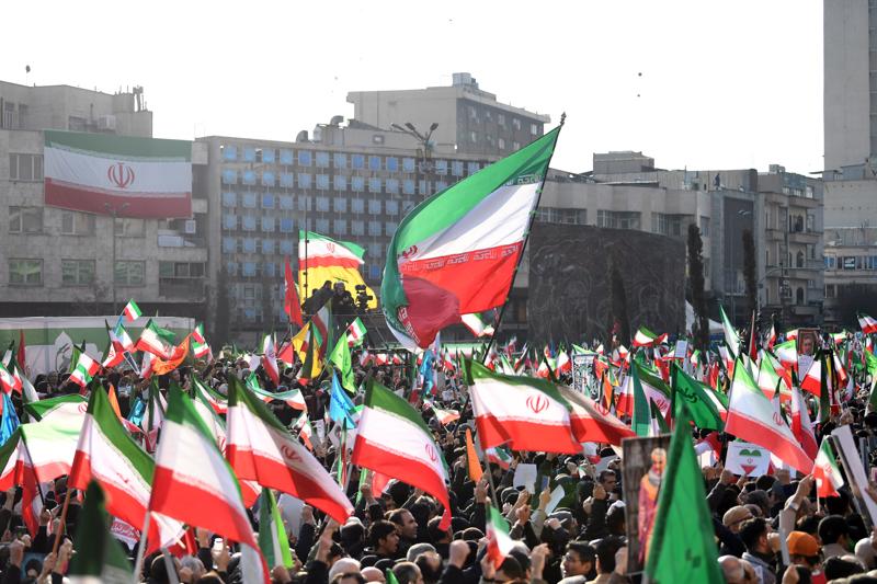 1月12日,在伊朗首都德黑蘭,人們參加集會。 新華社