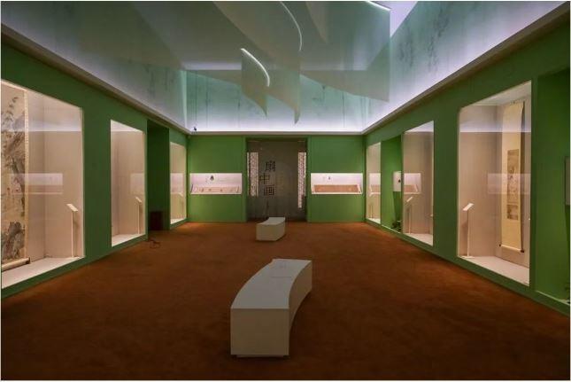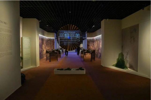 展覽的展陳設計也富有特色。比如,宋元展區融入宋代建築風格,中軸線兩側分佈展櫃,上方懸掛的裝置靈感取自宋徽宗的《瑞鶴圖》,兩側牆壁上印了《清明上河圖》,能看到當時百姓手搖扇子的形象。展覽還融入明清園林及文人書齋的美學理念,通過由大到小、由外及內的空間序列,形成連貫的觀展流線。輔線展品以立軸、手卷等形式,呈現繪畫中的扇文化內涵。主、輔展線在空間中穿插呼應,實現內景與外景的巧妙聯動。徜徉其中,觀者似能感受到懷袖雅物的溫度,亦能聽見清風喃喃的綿綿絮語。