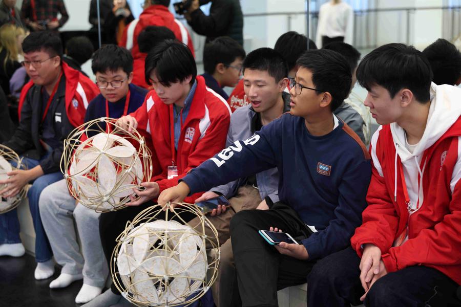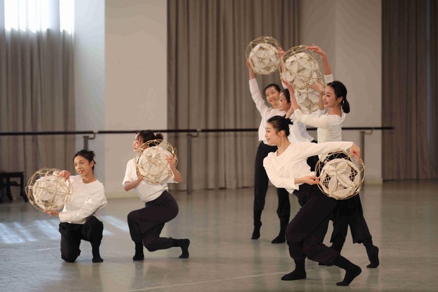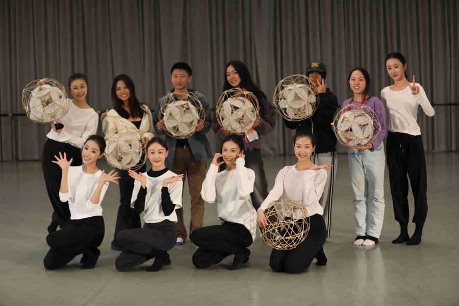 隨後,學員們觀摩了“非遺滾燈”“點絳脣”“永遇樂·宋韻燈影”等精彩片段的排練,並參與宋韻燈影舞蹈互動教學,親身感受中國古典舞的韻律與美感。作爲道具的滾燈引起了海外學子們的濃厚興趣。這件以竹篾編制的大型球體爲核心道具,中心懸掛內置燈燭的小球,舞動時燈光隨球體翻滾流動。“滾燈不僅是舞蹈道具,更是承載着民間智慧與集體記憶的文化符號。”青年演員王丹介紹了滾燈的歷史淵源與藝術特點,“希望它能像一顆文化的種子,在你們心中發芽,共同探索與傳播中華優秀傳統文化的當代生命力。”