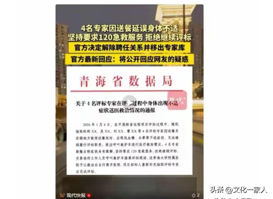青海四名專家在評標時,因午飯延誤半小時(還有說是20分鐘),竟然全都出現低血糖或頭暈症狀。