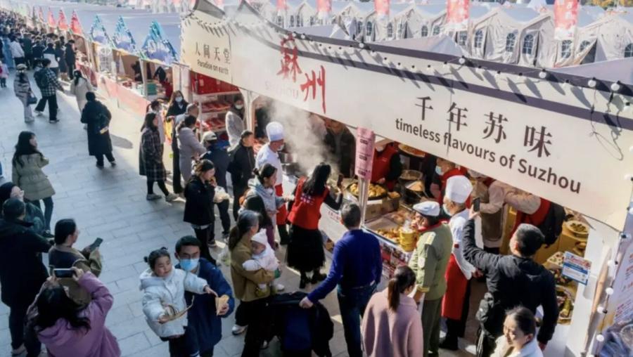 作爲東道主,蘇州奉上自己的美食盛宴。“百縣千味”尋味蘇州主題市集:30多個特色攤位,將蘇州各地的時令風物、經典小喫匯聚一堂。“到蘇州過酥年”蘇州冬宴發佈:一席知時節,五味動姑蘇。20桌精緻的蘇式冬宴將驚豔亮相,展示蘇州非遺年夜飯的雅緻與講究,提前感受“酥”式年的溫暖氛圍。