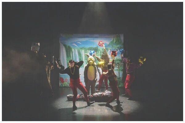正是在這樣的結構中,話劇《鳥尋得》呈現出一個具體而現實的舞臺故事:一個女孩如何因爲父母的突然離開,學習用童話理解生活和世界。全劇所有演員都戴上面具,肢體以誇張的牽線木偶風格演繹;人正在變形爲物,物正在僞裝成人。在劇中,與19世紀格林童話並行的,還有當代迪士尼童話。鳥尋得的媽媽是去找自由了——鳥尋得的玩偶,來自《小鹿斑比》的兔子桑普說。可自由在哪裏?會在桑普從未去過的故鄉迪士尼樂園嗎?