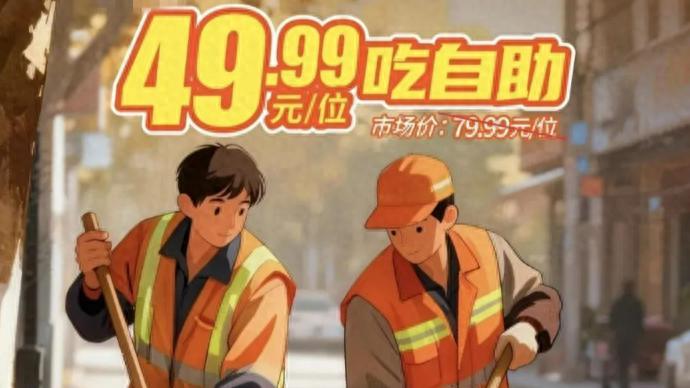 最近,某餐飲企業宣佈,將在1月26日當天面向環衛工人推出優惠活動,環衛工人持工作證或身着工作服,到店可享受全國統一自助優惠價 49.99元/位,該價格對標市場參考價爲79.99元。