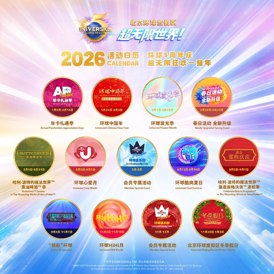 值此新年伊始,北京環球度假區同步揭曉五週年主題與專屬標誌。主題“環球五週年,任你超無限”承接“超無限世界”品牌主張,讓遊客在這一里程碑時刻既能依託IP多重宇宙故事觀成爲主角、創造無限可能,也能在體驗中開拓新視角、發掘寶藏玩法,更可在演出光影與音效中釋放感官、達成超越日常的情緒共鳴。