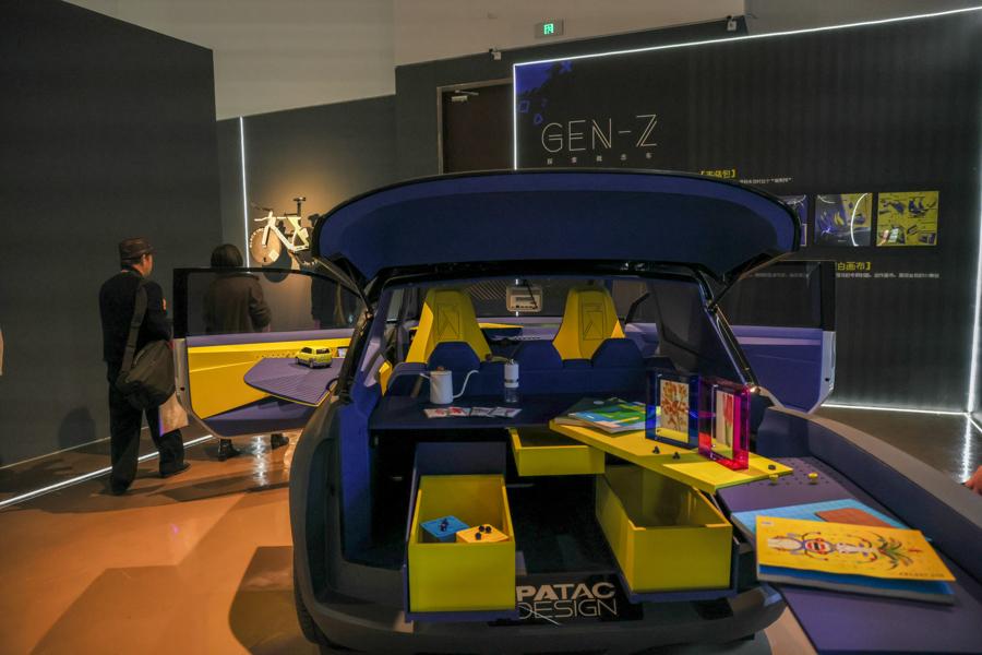 “一個好的設計創意,既能夠推動產品轉型升級,也能提升公衆的審美能力和歸屬感、幸福感。”展廳中,與人們日常生活息息相關的創新之作令範迪安印象深刻。從大型的公共藝術裝置到平面的城市視覺系統,從衣食住行到未來場域,藝術與設計於細微處提升生活品質。以一臺“小白車”爲例,這不僅僅是一輛概念車,更是Z世代彰顯個性、表達自我、滿足深層情感需求的獨特平臺,客戶可以結合生活習慣和場景喜好,定義專屬外觀設計和座艙空間。在這裏,車前燈是傳遞情緒、發送表情包的出口,車窗是展示潮玩、“穀子”的櫥窗,後備箱打開便是迷你咖啡吧……