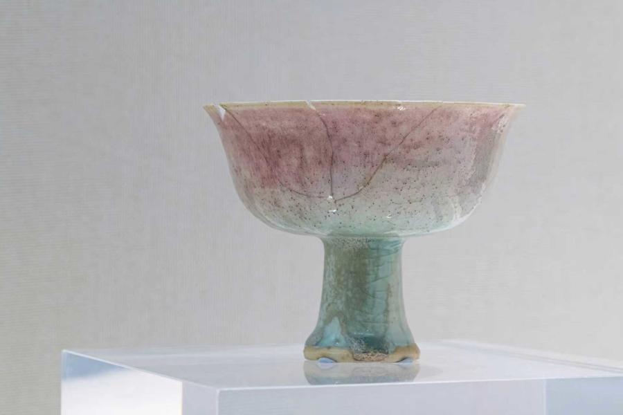 元代影青釉裏紅高足瓷杯,杭州博物館藏(圖源:視覺中國)