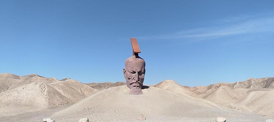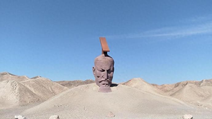 一方面,是專業表達與公共解讀的落差。這是一種審美的差異。建成於2020年的《漢武雄風》雕塑就很典型。這是一件以紅砂岩雕琢而成的作品,高12.5米,視覺主體爲碩大的漢武帝頭部,人物身體則隱於茫茫戈壁,“以祁連山爲軀,河西走廊爲體”,環境與作品共同構築起頗具歷史感的整體意境。它與《大地之子》《無界》《戈壁方舟》《風語者》等作品串起雕塑長廊,共同構成清華大學美術學院教授董書兵發起的“荒野藝術計劃”。儘管探索精神毋庸置疑,然而,當觀衆驟然與這件鉅作四目相接,不適感在很多人看來也是真實存在的,人煙稀少時甚至讓人感到害怕。