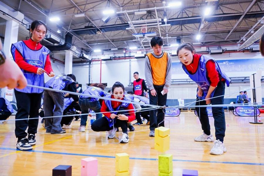 昨天(17日)下午,由中共黃浦區委社會工作部、黃浦區體育局、共青團黃浦區委、外灘街道黨工委共同主辦的黃浦區2026年凝“新”聚企系列活動之“潮”動黃浦 “趣”結同心——趣味運動嘉年華在黃浦市民健身中心正式開賽。由全區各樓宇(園區)、商圈(市場)、街區、行業等黨組織牽頭的20支隊伍、160名選手齊聚一堂,在揮灑汗水中釋放活力、增進情誼,在趣味運動中互動交流、凝聚力量,爲新興領域黨建工作提質增效注入了新動能。