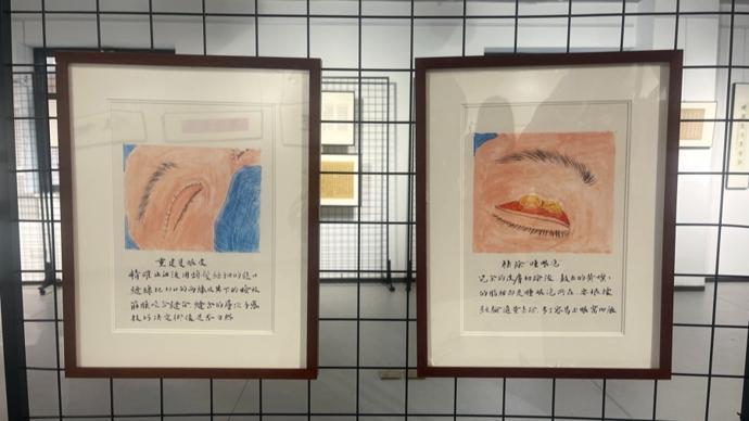 復旦大學附屬中山醫院整形外科醫生、上海市老年醫學中心整形外科副主任邢書亮是本次展覽策展人,也是多項展品的作者。外科醫生畫筆下的世界有何不同?邢書亮說,自己在繁忙的工作之餘就喜歡畫畫,整形外科這個學科本身也要求他對審美有一定的要求,“醫學與藝術都源於對生命之美的追求,通過書畫,我們嘗試將手術刀下的精準與宣紙上的筆墨相融合,讓醫學知識可視化、情感化、藝術化。”