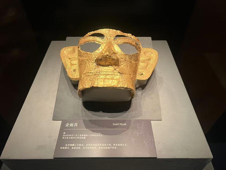本次展覽亮點紛呈,讓古蜀文明可觸可感。三星堆博物館藏戴冠縱目面具與中國國家博物館藏戴冠縱目面具,在本次展覽中並列展出,這是自1986年三星堆祭祀坑發掘以來,這兩件標誌性青銅面具的首次同臺亮相,令人歎爲觀止;同時,37件(套)此前從未外展的金沙遺址文物首度亮相國博。