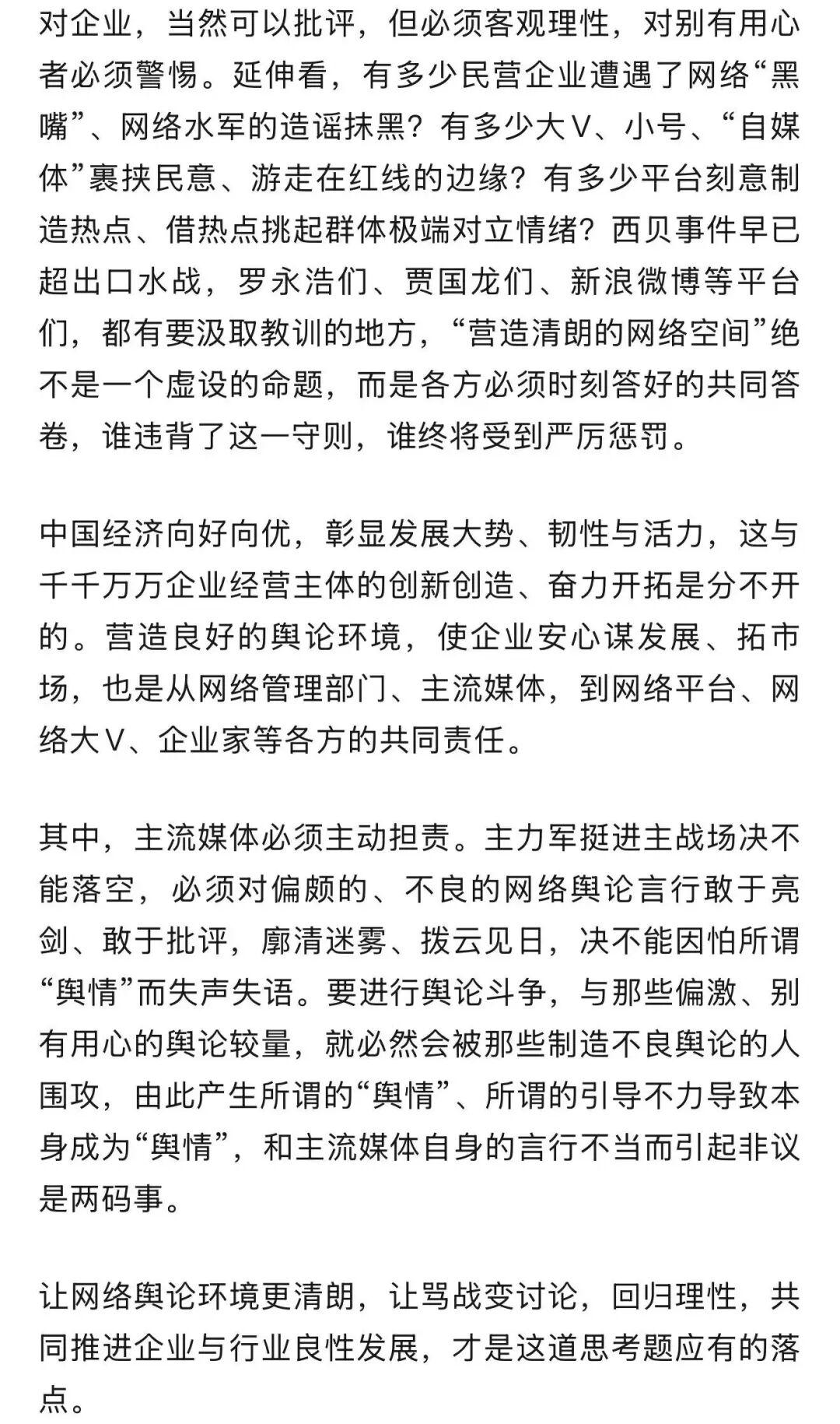 文中提到:從一些企業近年來遭遇的網絡困境看,網絡輿論環境已成爲影響企業生存環境乃至我國經濟發展環境的重要因素。特別是一些民營企業的網絡輿論環境惡化,直接導致其生存發展堪憂,影響了我國經濟發展環境。