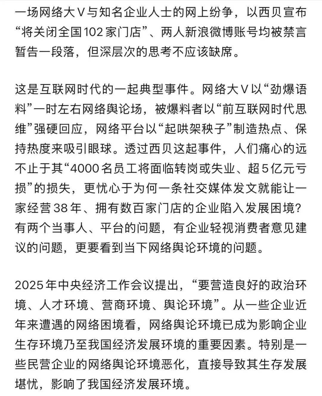 人民日報評西貝關店:西貝事件早已超出口水戰,網絡輿論環境不能成爲企業發展的短板