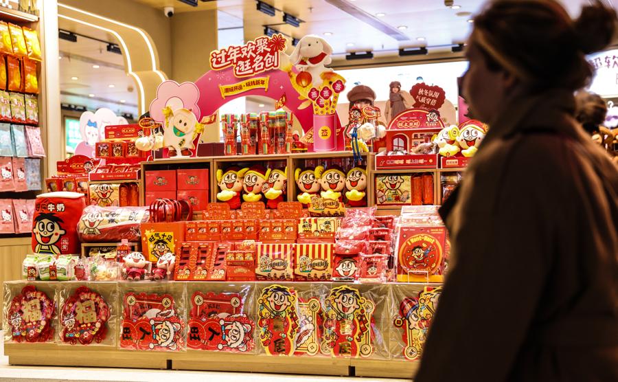 上海豫園舊校場路上,各大商鋪將剛上架的新年商品放在顯眼位置。