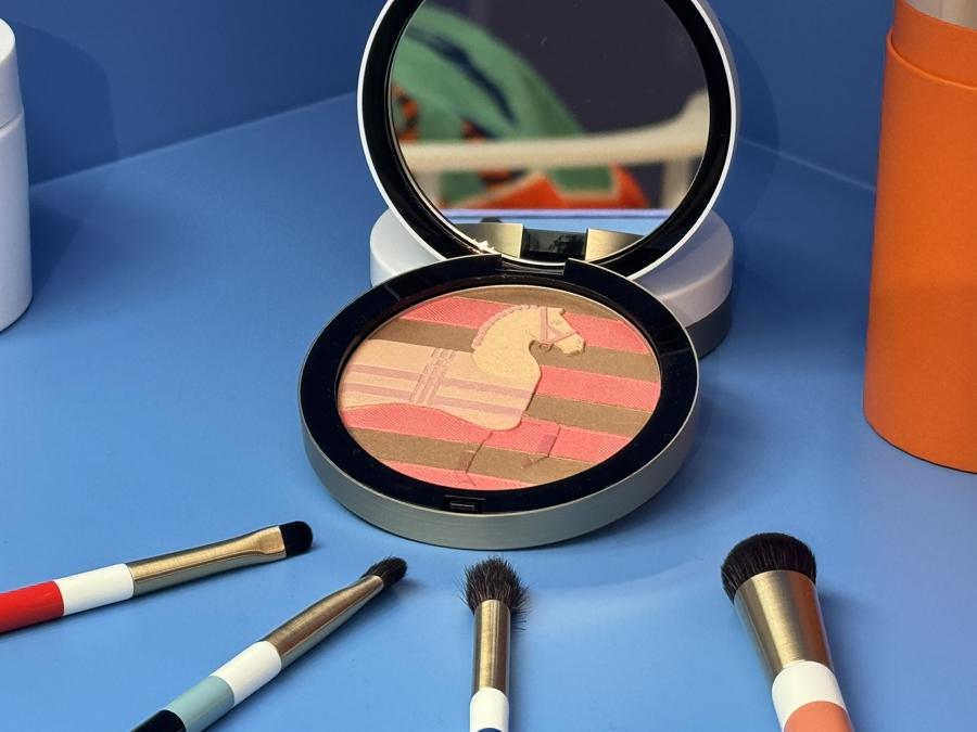 Poudre Rocabar 愛馬仕絲柔粉妝煥顏蜜粉餅(駿馬限量版):Poudre Rocabar 愛馬仕絲柔粉妝煥顏蜜粉餅(駿馬限量版)承載着深深根植於福寶大道24號的馬術傳統,源自20年代的 Rocabar 圖案再次煥新登場,一匹精細勾畫的駿馬從絲巾上躍然而出,抬步跨入粉盒之中,這件美妝作品將實用性與詩意完美結合,而巧奪天工的多色壓粉 工藝,則使之成爲獨一無二的臻品。