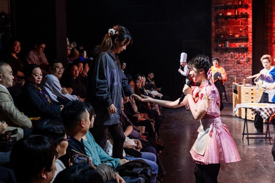 燈光亮起,節奏燃動。廚師化身“人聲音響”,以口技與無伴奏合唱模擬鍋碗瓢盆的靈動韻律,從意大利披薩到上海鹹肉菜飯,多種美食意象貫穿全場——韓國現象級音樂劇《廚神秀》中文版,正在上海新世界城12樓帶來充滿本土特色的高互動表演。近日,全國首座“音樂劇探知樂園”——十二樓音樂劇之城正式啓幕,《廚神秀》作爲其中一臺已經開演的駐演劇目,首批觀衆獲邀上臺,在熱烈互動中率先體驗了“看劇+生活”的多元文化新場景。